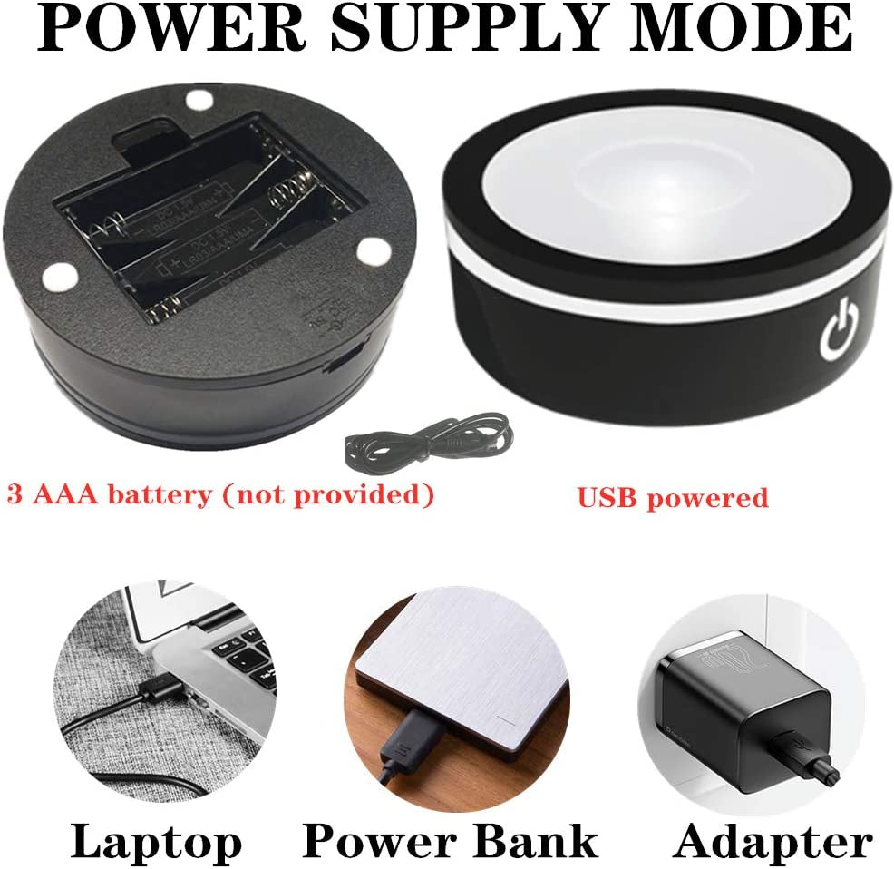The crystal ball sits on a sleek. black base. which not only adds to its elegant look but also allows you to easily display it anywhere you'd like. LED light base powered by batteries (not included) or usb cable.